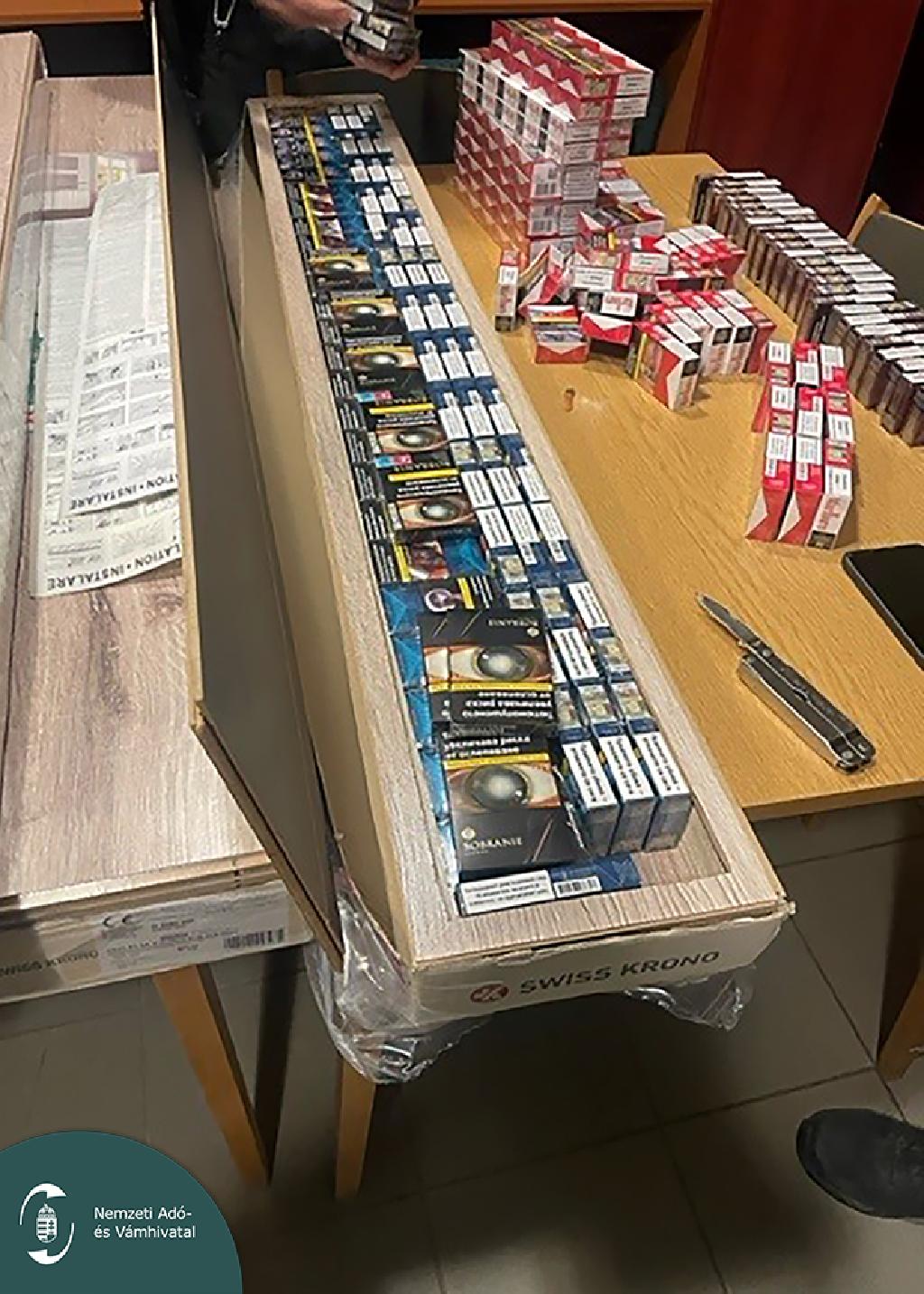 A Győr-Moson-Sopron vármegyében megállított bolgár személyautó 58 éves sofőrje azt mondta a pénzügyőröknek, hogy csak a megengedett mennyiségű cigaretta van nála. A NAV Toto nevű kutyája azonban másként érzékelte: jelzését követően a pénzügyőrök átvizsgálták a jármű csomagtartójában lévő tíz csomag laminált parkettát is. A padlóburkolatok belsejéből 1 680 doboz, bolgár cigaretta került elő. A férfi azzal védekezett, hogy a dohánytermék a saját tulajdona, amit a rokonoknak vitt Belgiumba.